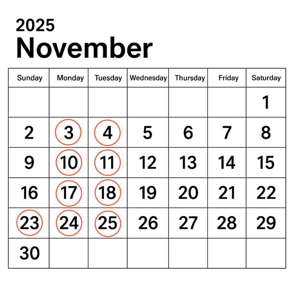11月のお休み